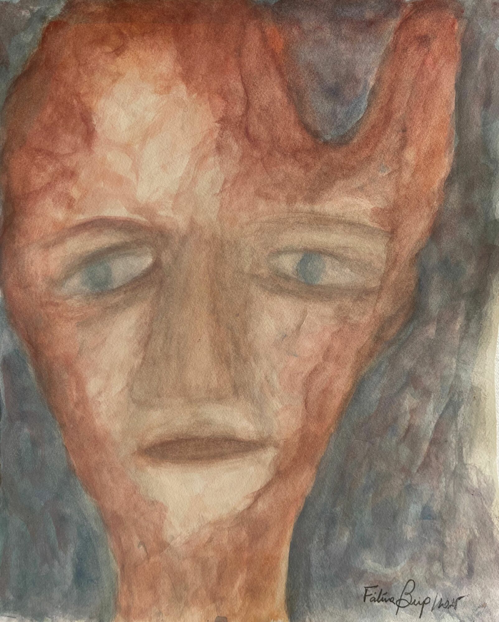 In creating “Self-portrait of Pain”, I sought to translate intimate experiences into a sensitive image. This work is a testimony of the exercise of confronting my own limits and scars. The watercolor gesture, light and yet dense, allows suering to be exposed without hardening, in an attempt to nd beauty and poetry even in the most dicult moments of existence.